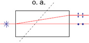 directly, e-ray transmits with a displacement.