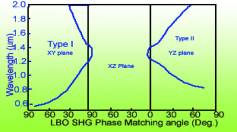 is phase matchable for the SHG and THG of Nd:YAG and Nd:YLF lasers, using